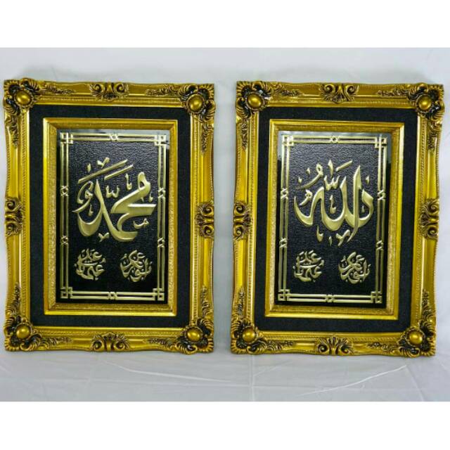 Harga kaligrafi akrilik allah muhammad black gold big zise 40cm.